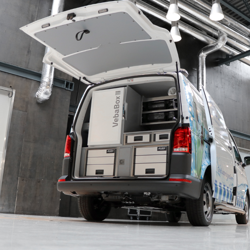 In March 2021, AQUON renewed its company vehicle fleet and equipped its company vehicles with a custom-made mini laboratory. John: “We have invested a lot of time and energy here to create approximately the perfect installation in order to be able to do our work as efficiently as possible. VebaBox offers the solution to furnish our commercial vehicle as practically as possible, because quality measurements of the water can be taken immediately, after which the sample is stored and transported at +/- 5°C in the VebaBox. Because the VebaBox has been custom-made especially for us, we have enough space left over for office work and storage of our measuring instruments.”